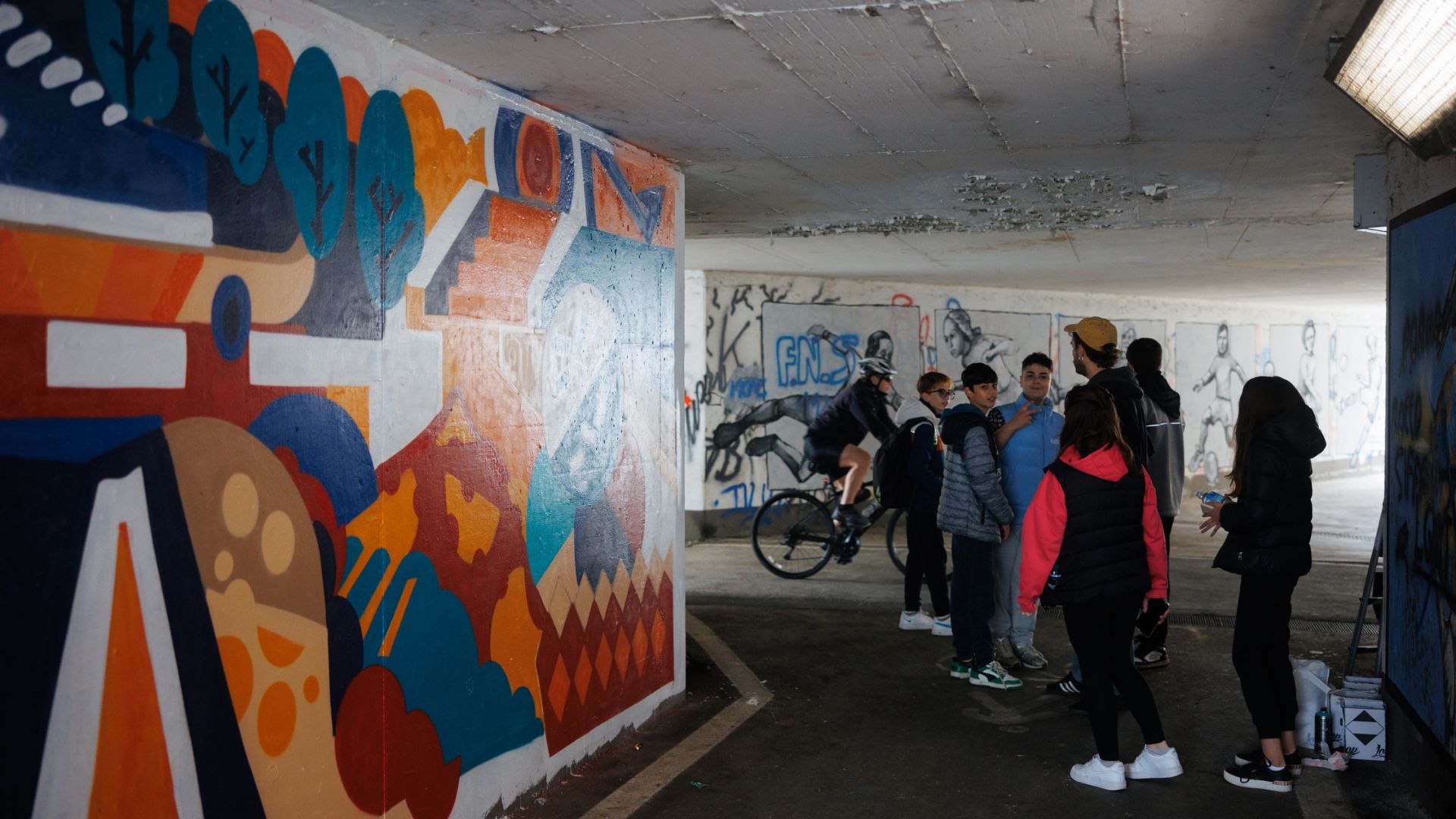 Gli studenti della 2E che hanno proposto la progettualità più interessante hanno preso parte alla realizzazione di un murales nel sottopassaggio della COOP di Maranello nei giorni 27/28 aprile sotto la supervisione del collettivo di street art Interno Undici. Questa esperienza ha avuto l’obiettivo di far agire i ragazzi, in modo controllato e appropriato, sullo spazio pubblico del loro paese. Il disegno è stato co-progettato e gli elementi presenti nel murales tengono conto del percorso svolto dai ragazzi